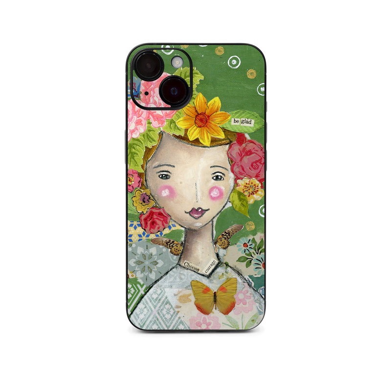 iStyles iPhone 14 Series Skin design of Watercolor paint, Illustration, Art, Painting, Plant, Flower, Visual arts, Paint, Child art, Acrylic paint, with green, pink, red, orange, white, blue, brown colors, and tagged with flowers, patterns, animals, people.