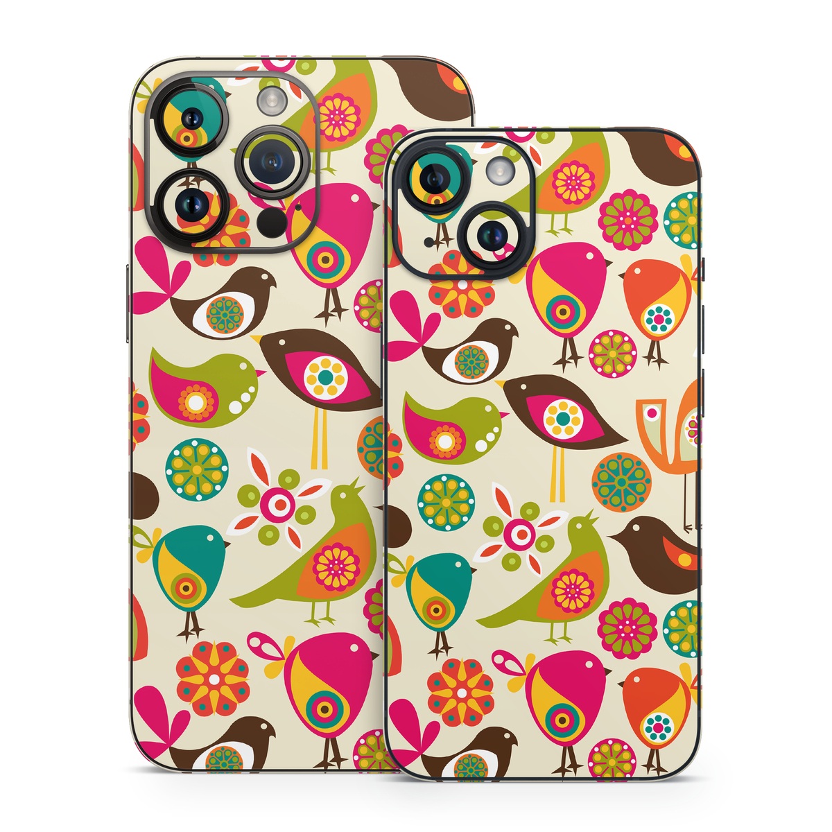 iStyles iPhone 14 Series Skin design of Pattern, Visual arts, Wrapping paper, Design, Clip art, Textile, Motif, Sticker, Graphics, with yellow, pink, orange, green, brown, blue colors, and tagged with patterns, animals, flowers.