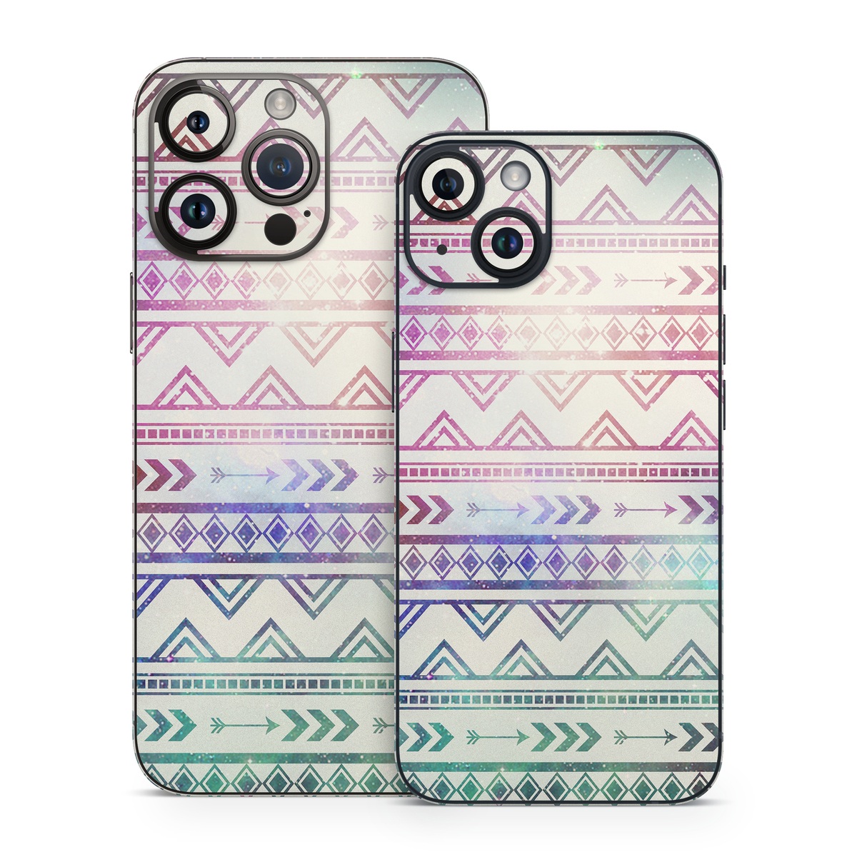 iStyles iPhone 14 Series Skin design of Pattern, Line, Teal, Design, Textile, with gray, pink, yellow, blue, black, purple colors, and tagged with patterns.