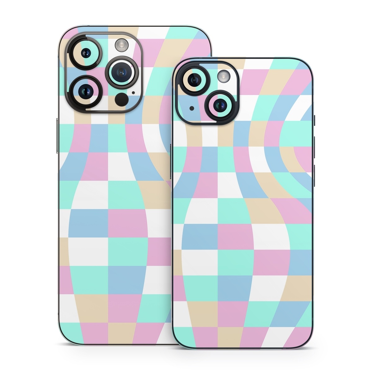 iStyles iPhone 14 Series Skin design of Azure, Textile, Rectangle, Art, Pink, Painting, Aqua, Font, Magenta, Material property, with white, blue, pink colors, and tagged with patterns, form.