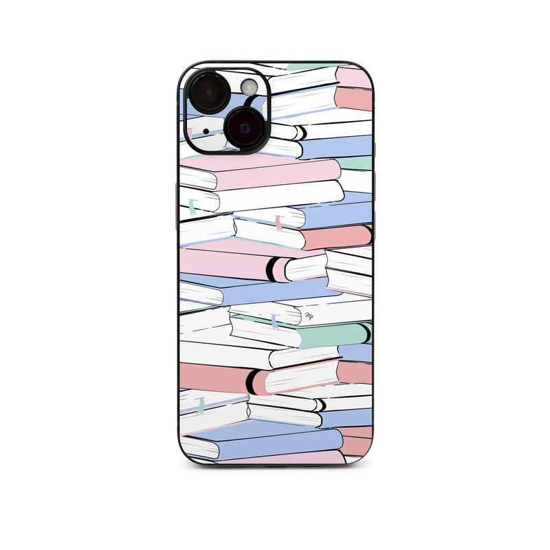 iStyles iPhone 14 Series Skin design of White, Line, Material property, Red, Font, Pattern, Parallel, Carmine, Rectangle, Slope, with white, black, blue, green, pink colors, and tagged with objects, patterns, books, stack, background.