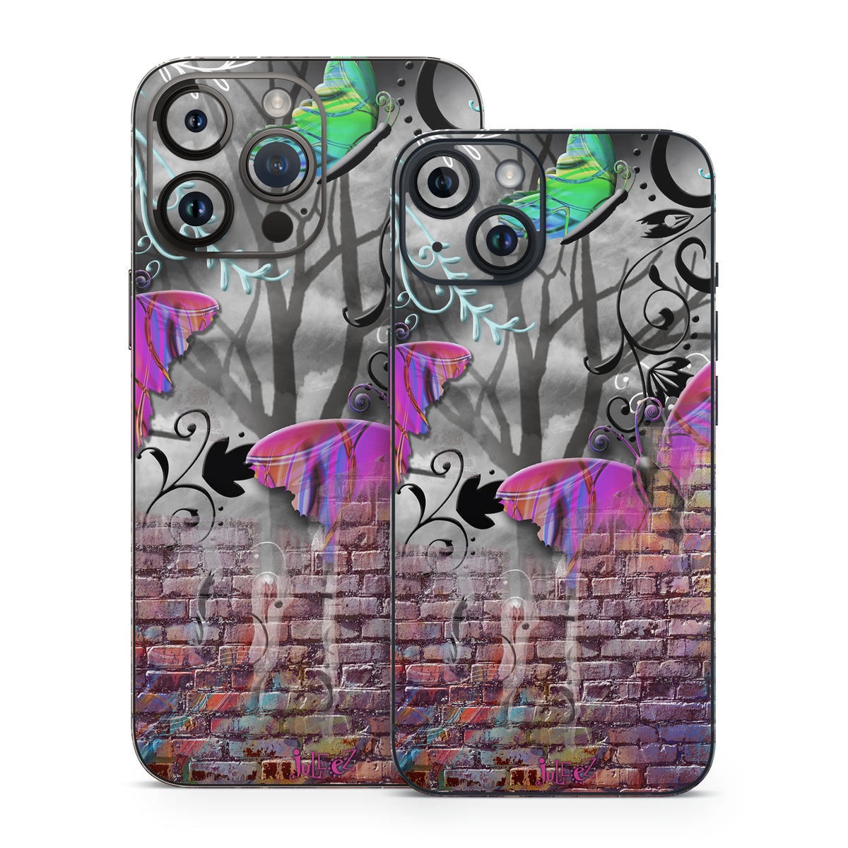 iStyles iPhone 14 Series Skin design of Purple, Graphic design, Art, Pattern, Graffiti, Organism, Street art, Wall, Font, Illustration, with red, black, gray, purple, orange, blue, green colors, and tagged with abstract, animals.