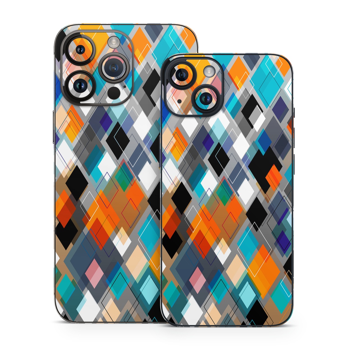 iStyles iPhone 14 Series Skin design of Pattern, Line, Design, Colorfulness, Plaid, Tints and shades, Textile, Symmetry, Square, with black, blue, red, orange, white colors, and tagged with patterns.