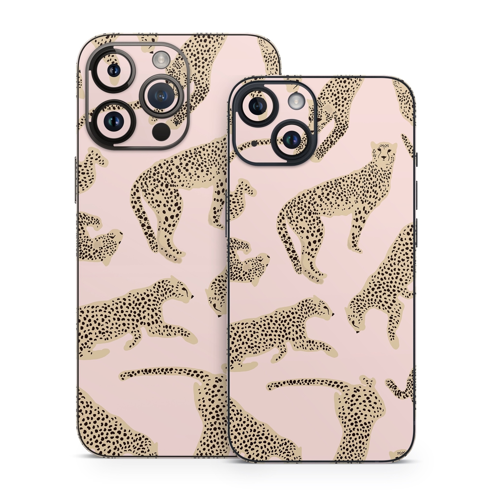 iStyles iPhone 14 Series Skin design of Hair, Vertebrate, White, Organ, Textile, Organism, Mammal, Felidae, Font, Line, with pink, yellow, black colors, and tagged with patterns, animals, cheetah, acinonyx, jubatus.
