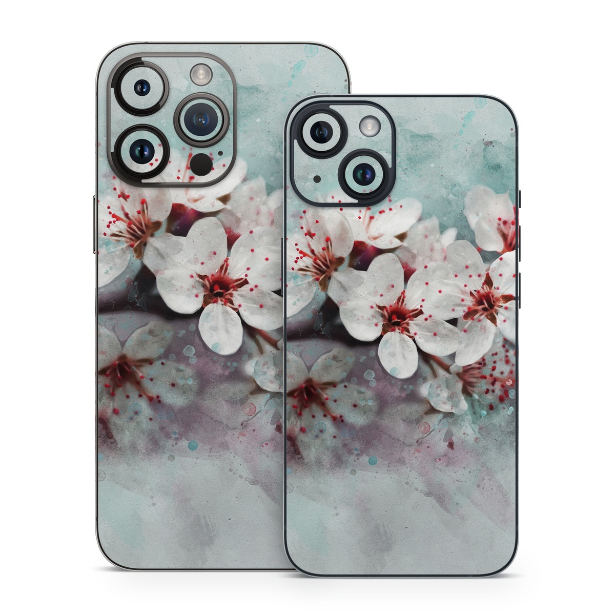 iStyles iPhone 14 Series Skin design of Blossom, Flower, Cherry blossom, Watercolor paint, Plant, Spring, Pink, Petal, Branch, Painting, with white, gray, red, pink, purple, blue colors, and tagged with flowers, cherryblossom, cherryblossoms, flower, flowers, tree, trees, watercolor.