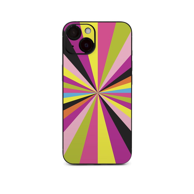 iStyles iPhone 14 Series Skin design of Colorfulness, Material property, Magenta, Symmetry, Tints and shades, Creative arts, Pattern, Electric blue, Art, Design, with black, pink, yellow, purple, green, blue, orange colors, and tagged with patterns, pattern, hypnotise.