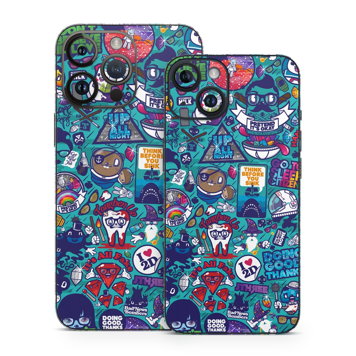 iStyles iPhone 14 Series Skin design of Art, Visual arts, Illustration, Graphic design, Psychedelic art, with blue, black, gray, red, green colors, and tagged with abstract, space, hearts.