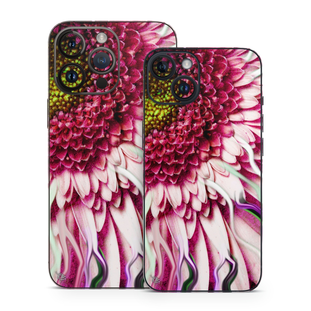 iStyles iPhone 14 Series Skin design of Flowering plant, Flower, Petal, Plant, Purple, Pink, Gazania, Violet, Gerbera, Chrysanths, with black, gray, red, purple, pink, white colors, and tagged with flowers, photos.