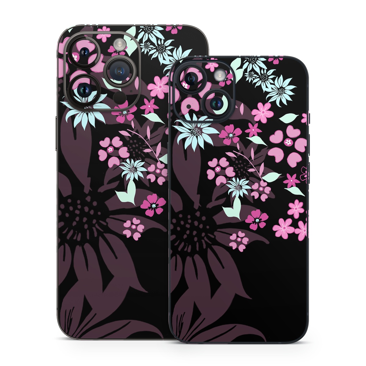 iStyles iPhone 14 Series Skin design of Pink, Pattern, Flower, Plant, Botany, Petal, Floral design, Design, Pedicel, Graphic design, with black, gray, purple, green, red, pink colors, and tagged with flowers, abstract, patterns.