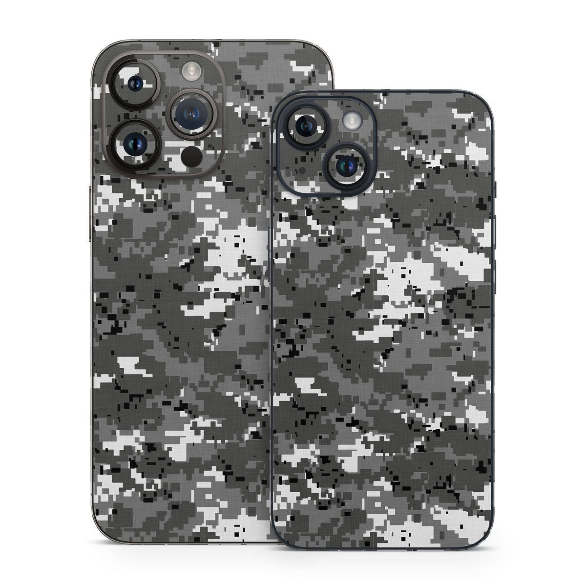 iStyles iPhone 14 Series Skin design of Military camouflage, Pattern, Camouflage, Design, Uniform, Metal, Black-and-white, with black, gray colors, and tagged with military, lookslike, patterns.