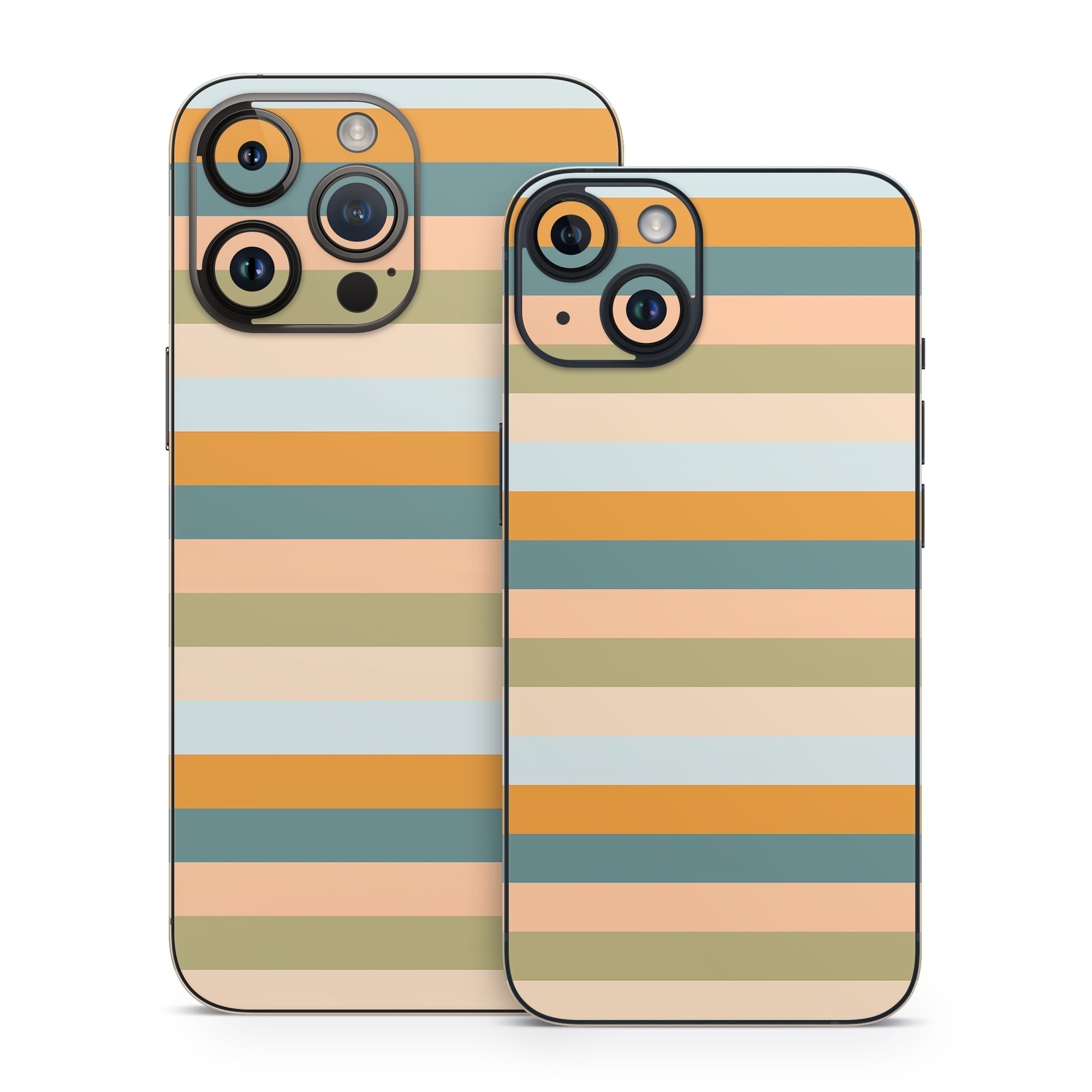 iStyles iPhone 14 Series Skin design of Azure, Rectangle, Orange, Material property, Tints and shades, Pattern, Parallel, Electric blue, Magenta, Peach, with orange, blue, green colors, and tagged with patterns, earth, tones, land, sea, sky.