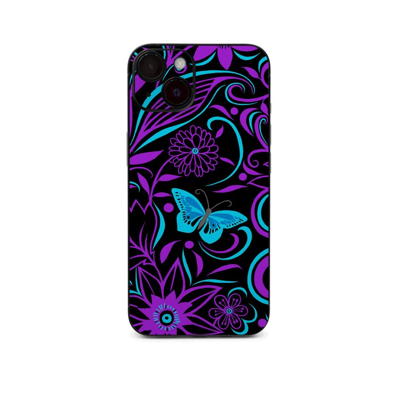 iStyles iPhone 14 Series Skin design of Pattern, Purple, Violet, Turquoise, Teal, Design, Floral design, Visual arts, Magenta, Motif, with black, purple, blue colors, and tagged with flowers, patterns.