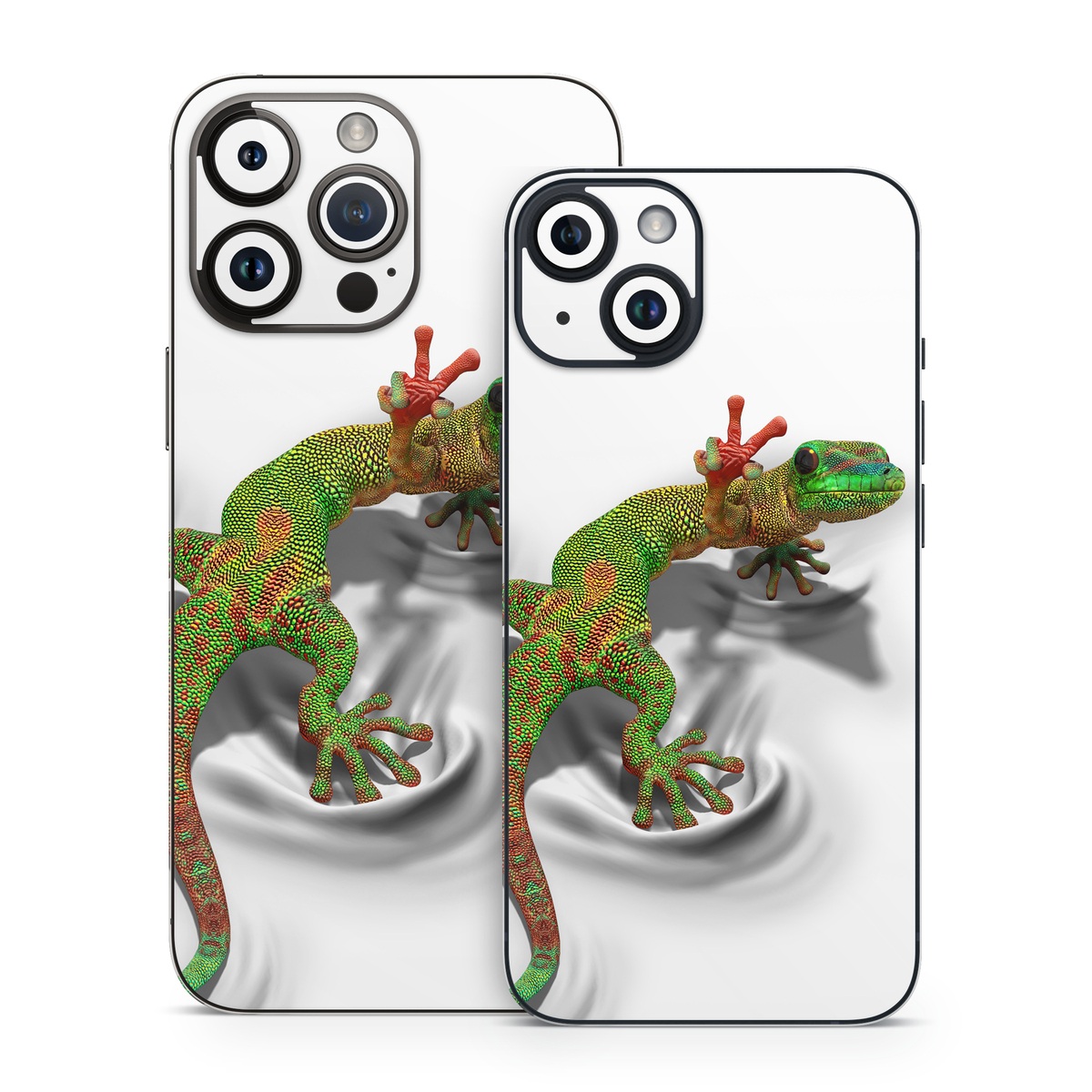 iStyles iPhone 14 Series Skin design of Lizard, Reptile, Gecko, Scaled reptile, Green, Iguania, Animal figure, Wall lizard, Fictional character, Iguanidae, with white, gray, black, red, green colors, and tagged with animals.