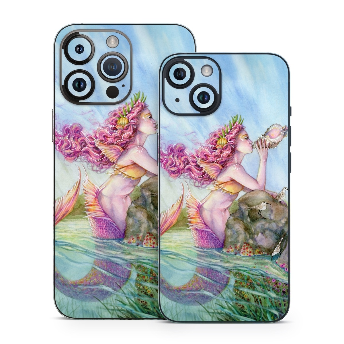 iStyles iPhone 14 Series Skin design of Cg artwork, Mythology, Illustration, Fictional character, Watercolor paint, Art, Painting, Plant, Mythical creature, with blue, pink, purple, green, gray colors, and tagged with people, fantasy, animals, nature, objects, beach, fantasy, mermaid, mermaids, ocean, sci-fi, seashells.