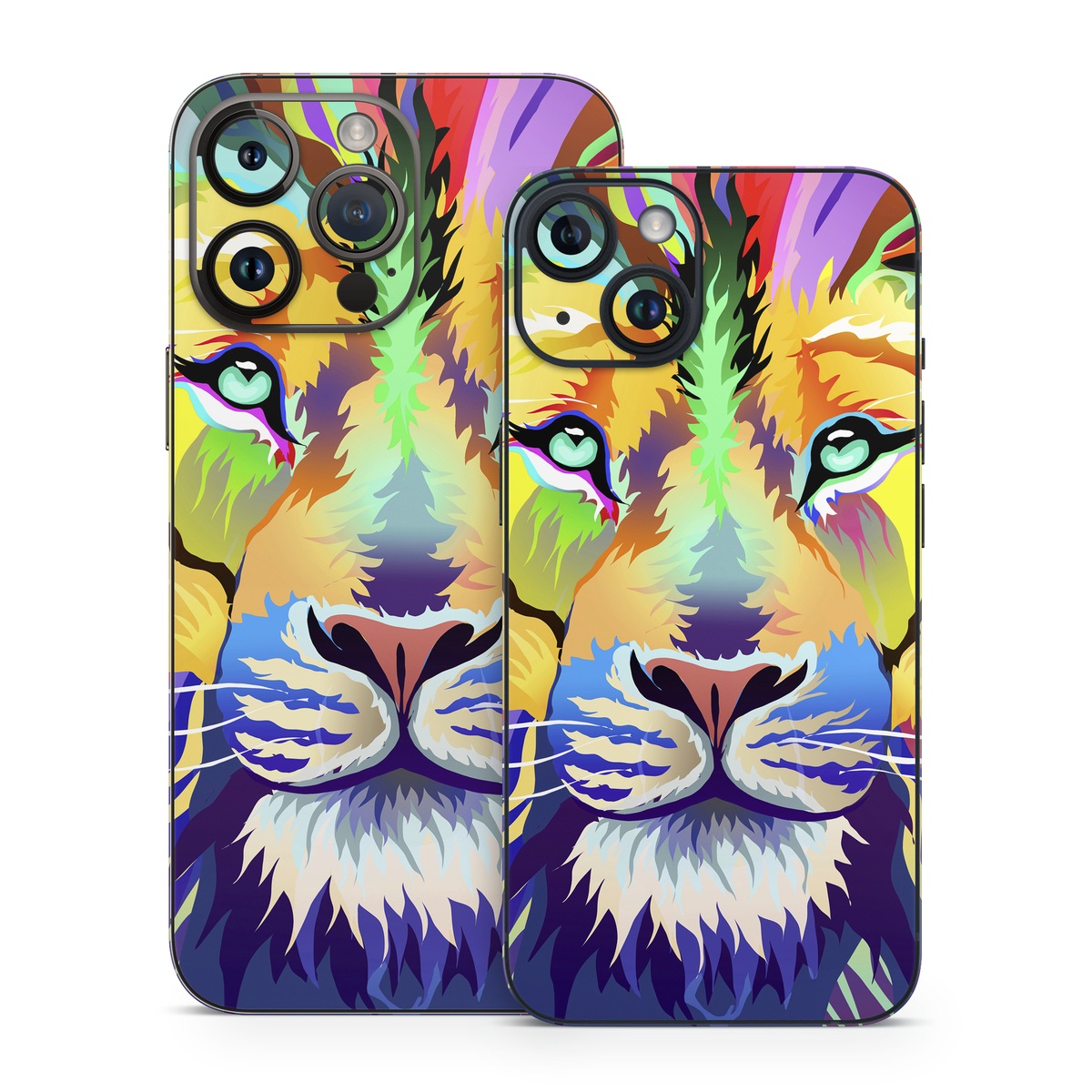 iStyles iPhone 14 Series Skin design of Bengal tiger, Felidae, Lion, Wildlife, Big cats, Tiger, Carnivore, Art, Illustration, Painting, with orange, yellow, green, red, pink, blue, purple colors, and tagged with animals.