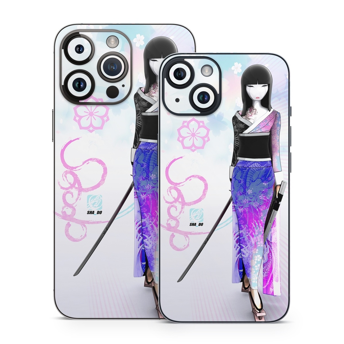 iStyles iPhone 14 Series Skin design of Clothing, Fashion illustration, Fashion model, Pink, Fashion, Purple, Fashion design, Dress, Barbie, Illustration, with white, pink, purple, black, blue colors, and tagged with people, objects, flowers, signs, anime, shado, sword.