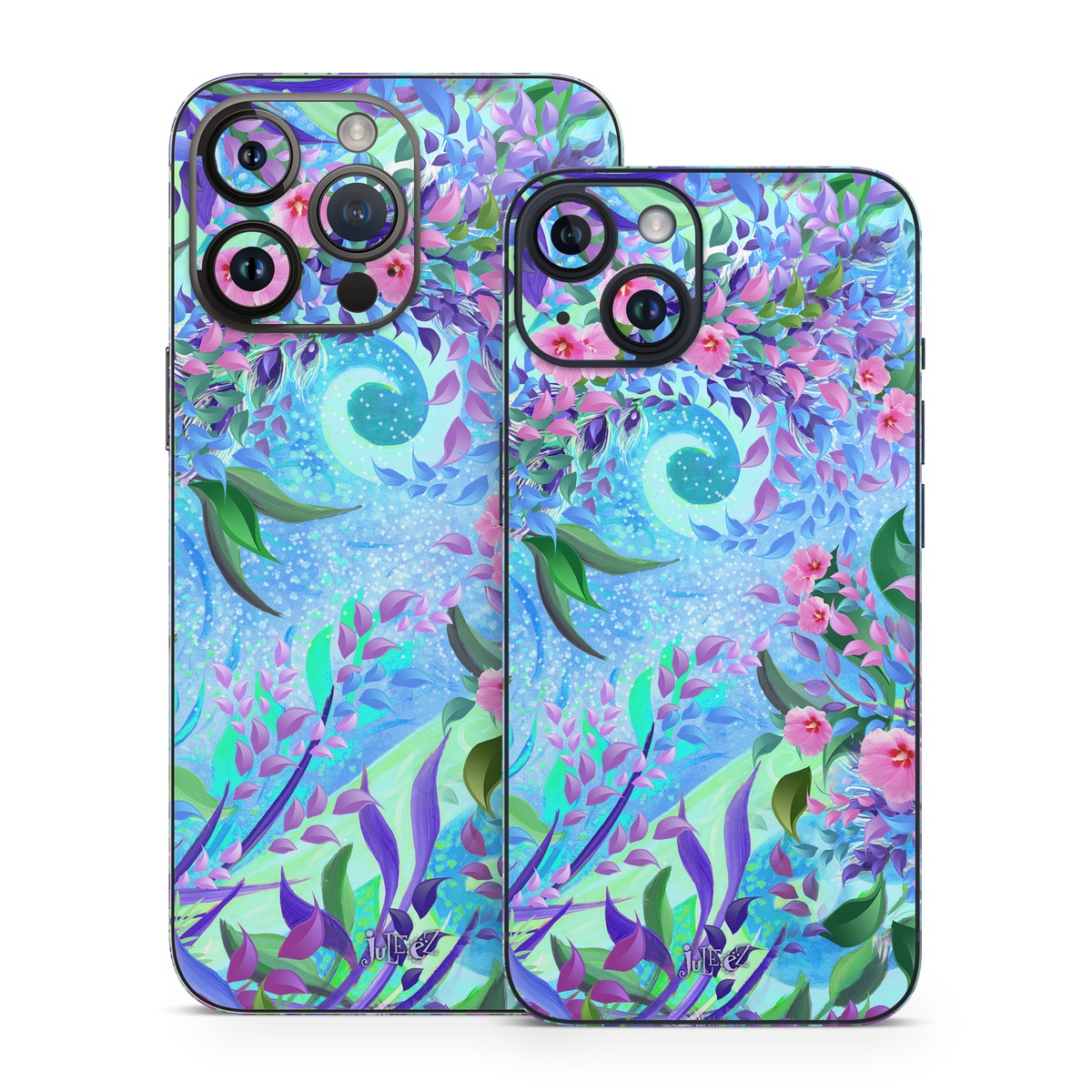iStyles iPhone 14 Series Skin design of Psychedelic art, Pattern, Lilac, Purple, Art, Pink, Design, Fractal art, Visual arts, Organism, with gray, blue, purple colors, and tagged with patterns, nature, flowers.