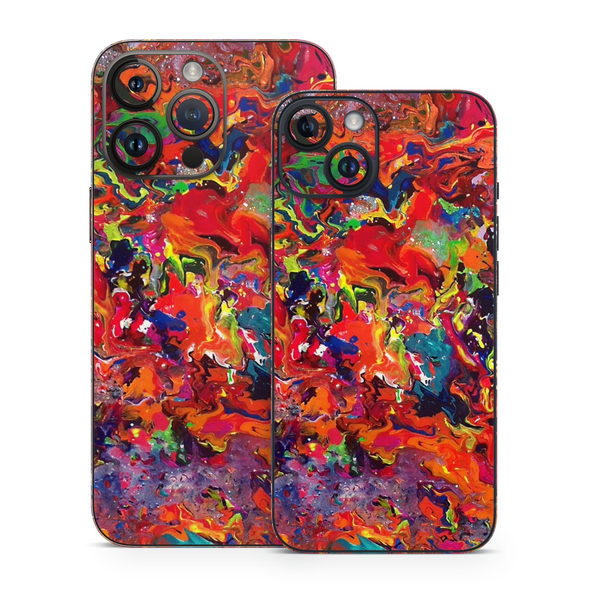 iStyles iPhone 14 Series Skin design of Colorfulness, Modern art, Acrylic paint, Painting, Visual arts, Art, Psychedelic art, Textile, Pattern, Paint, with red, yellow, green, orange, yellow colors, and tagged with patterns.