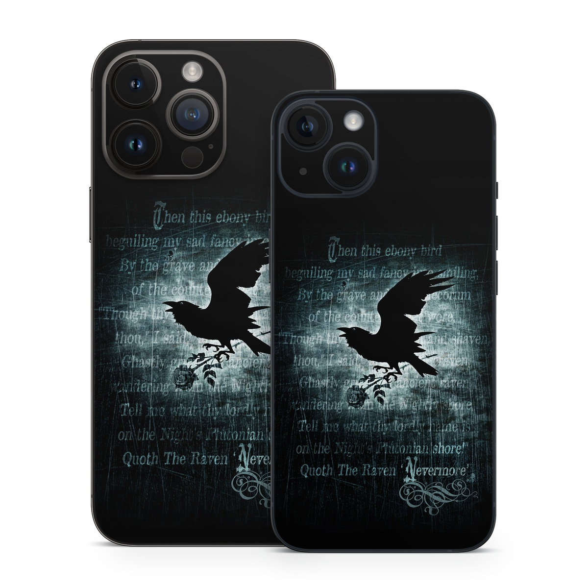 iStyles iPhone 14 Series Skin design of Bird, Text, Wing, Graphic design, Darkness, Font, Illustration, Graphics, with black, white, blue colors, and tagged with signs, flowers.