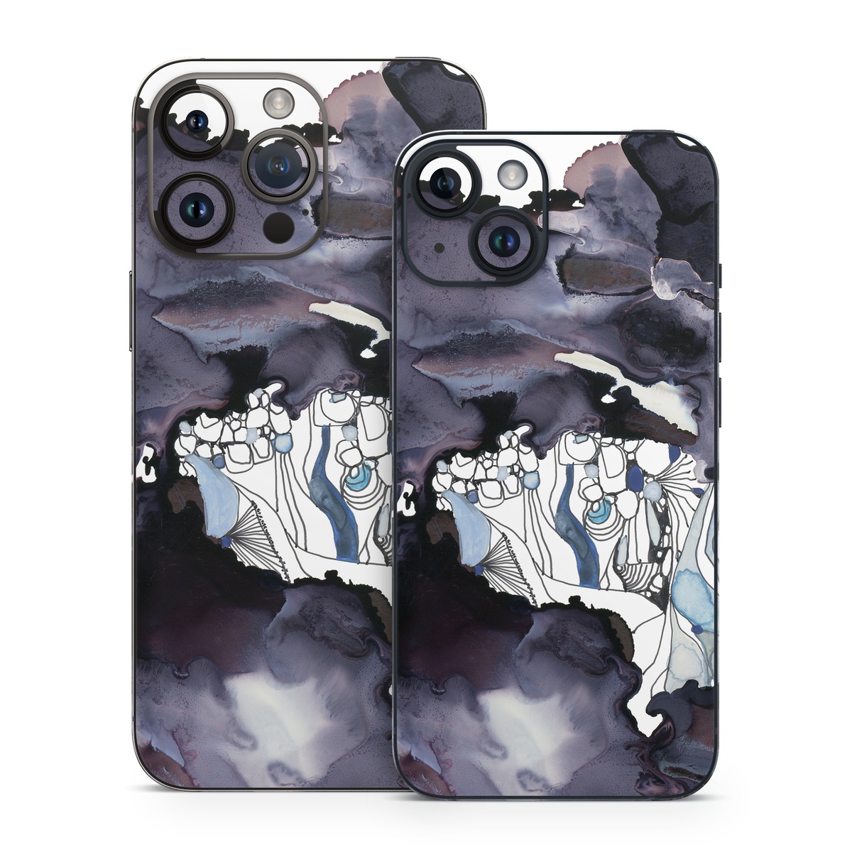 iStyles iPhone 14 Series Skin design of Watercolor paint, Illustration, Art, World, Paint, Cg artwork, Drawing, Graphic design, Animation, Rock, with black, purple, white, blue colors, and tagged with abstract, nature, abstract, purple, watercolor.