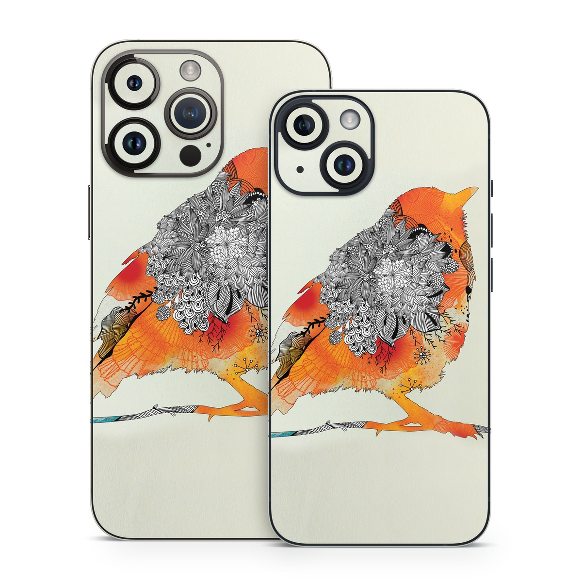 iStyles iPhone 14 Series Skin design of European robin, Orange, Bird, Illustration, Old World flycatcher, Drawing, Songbird, Perching bird, robin, Sketch, with gray, yellow, green, red, black colors, and tagged with animals.