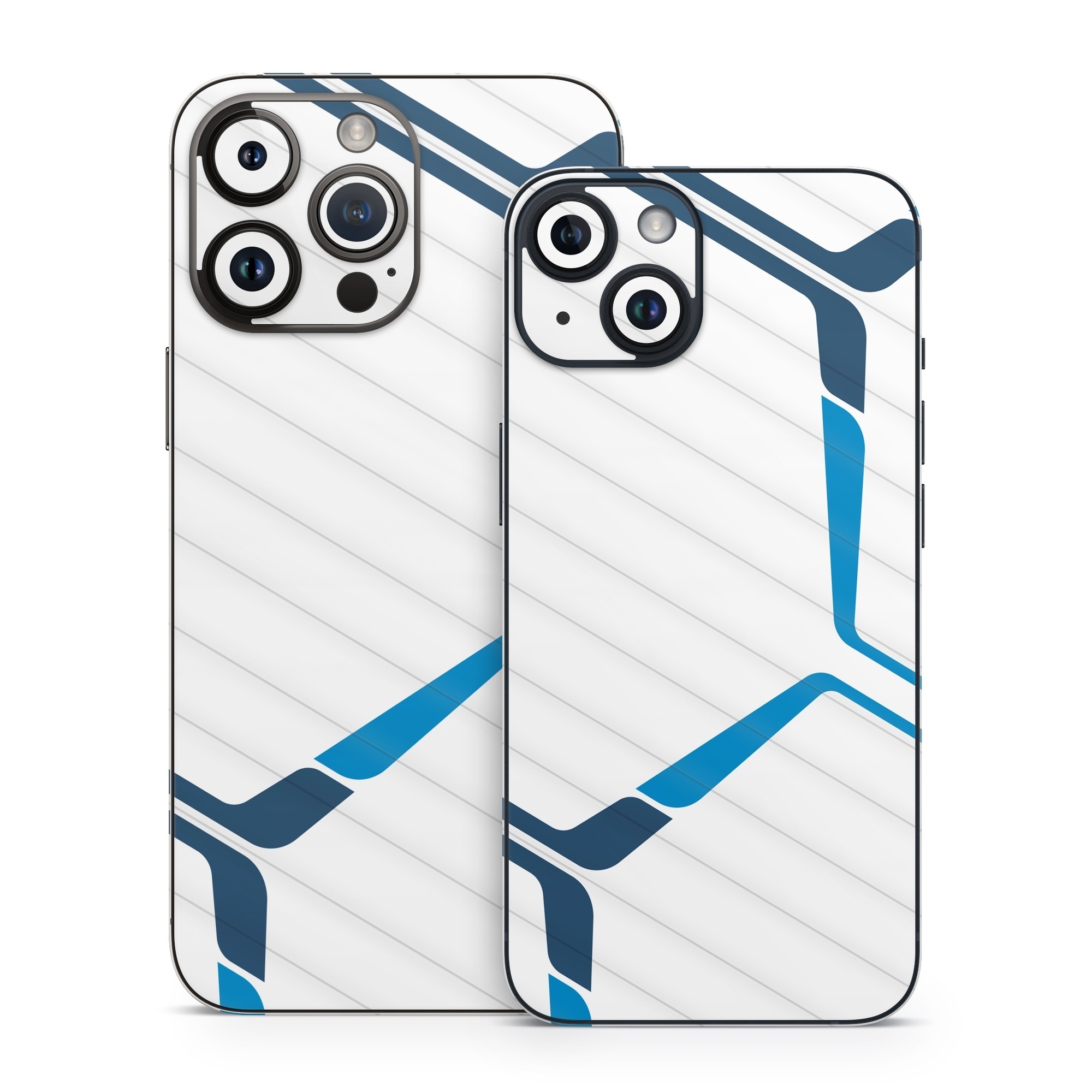 iStyles iPhone 14 Series Skin design of Textile, Sleeve, Font, Parallel, Pattern, Electric blue, Jersey, Sportswear, Symmetry, Graphics, with white, blue colors, and tagged with patterns, hexagon, pattern, lines.