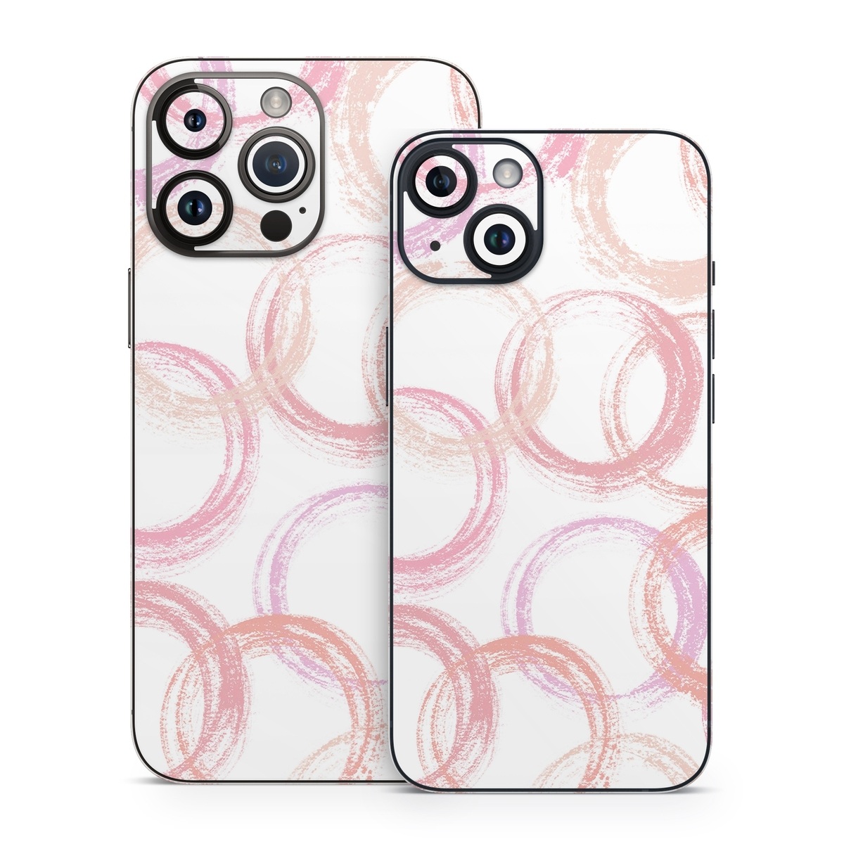 iStyles iPhone 14 Series Skin design of Purple, Textile, Pink, Motif, Violet, Material property, Magenta, Art, Circle, Font, with pink, white colors, and tagged with patterns, pink, circles.