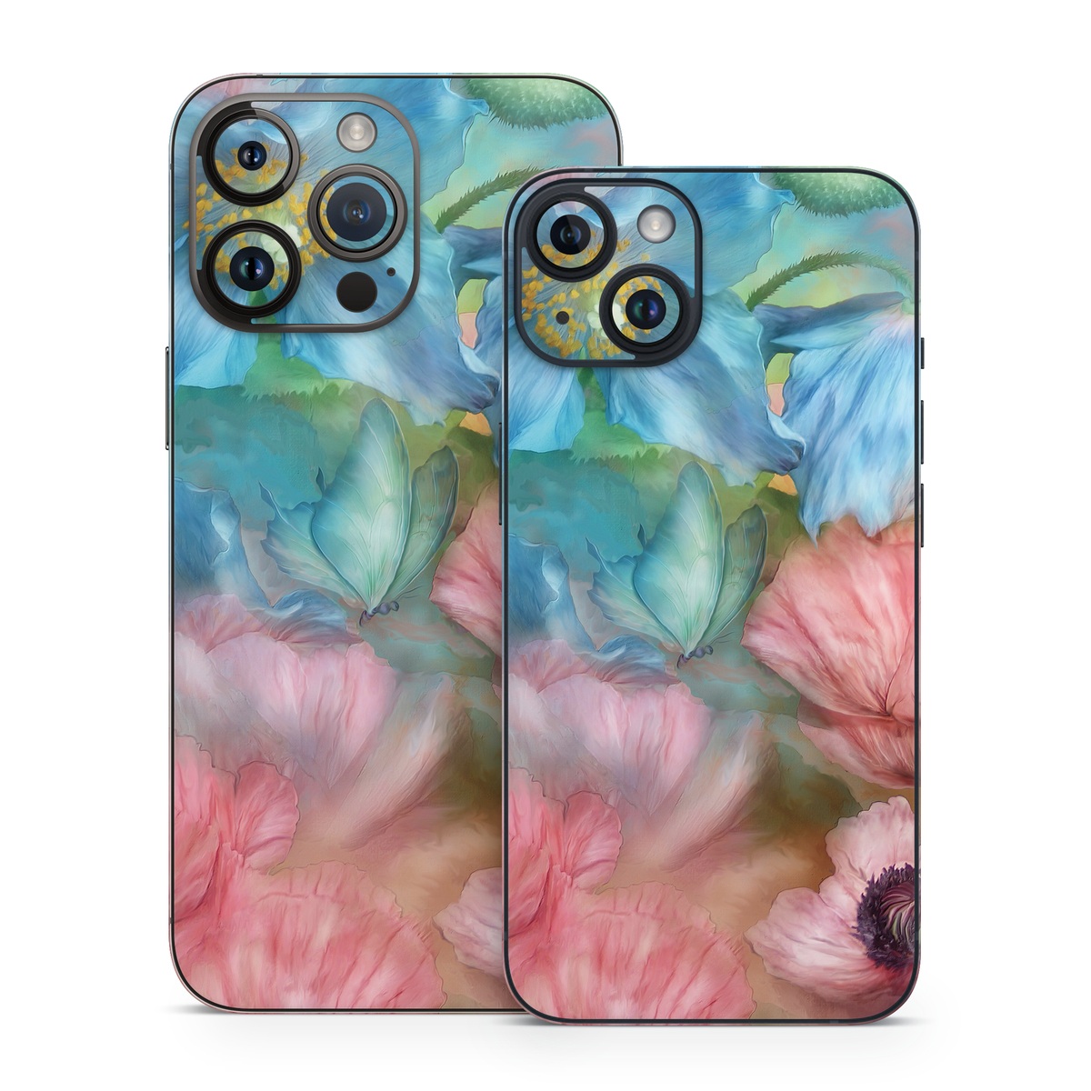 iStyles iPhone 14 Series Skin design of Flower, Petal, Watercolor paint, Painting, Plant, Flowering plant, Pink, Botany, Wildflower, Still life, with gray, blue, black, red, green colors, and tagged with flowers, animals.