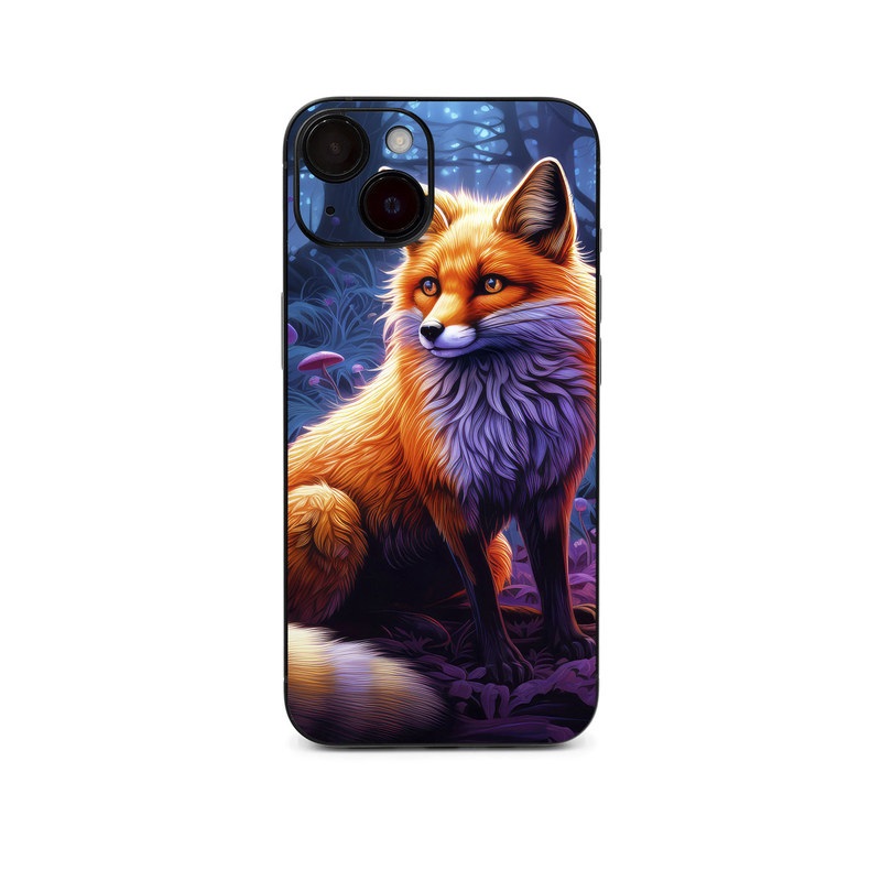 iStyles iPhone 14 Series Skin design of Plant, Light, Carnivore, Orange, Organism, Tree, Pink, Natural landscape, Fawn, Whiskers, with red, orange, white, black, purple, gray, green colors, and tagged with animals, nature, fineart, fox, forest, mushrooms, trees, dusk, glow, bushy, tail.