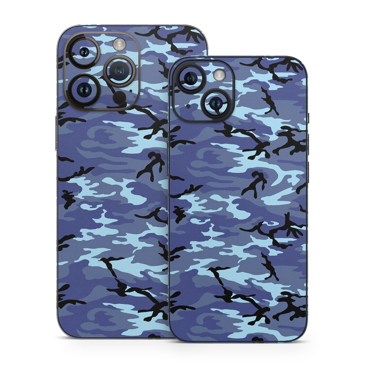 iStyles iPhone 14 Series Skin design of Military camouflage, Pattern, Blue, Aqua, Teal, Design, Camouflage, Textile, Uniform, with blue, black, gray, purple colors, and tagged with military, patterns, lookslike.
