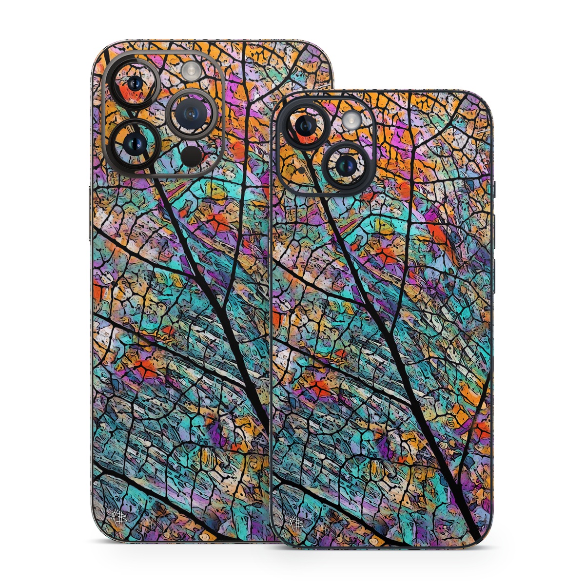 iStyles iPhone 14 Series Skin design of Pattern, Colorfulness, Line, Branch, Tree, Leaf, Design, Visual arts, Glass, Plant, with black, gray, red, blue, green colors, and tagged with patterns, nature.