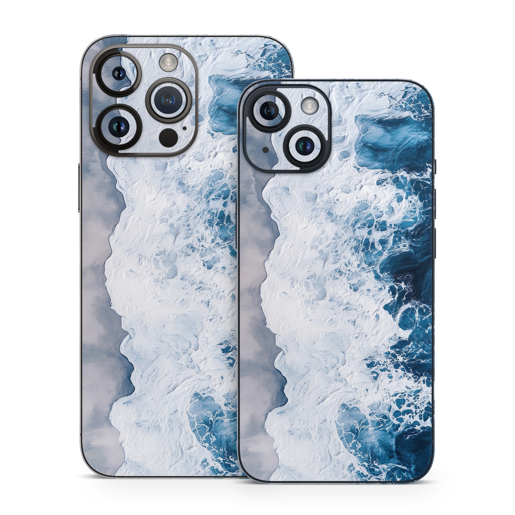 iStyles iPhone 14 Series Skin design of Water, Atmosphere, Water resources, Cloud, Liquid, Azure, Fluid, Natural landscape, Wind wave, Sky, with black, blue, white, gray colors, and tagged with nature, fineart, beach, waves, sand.