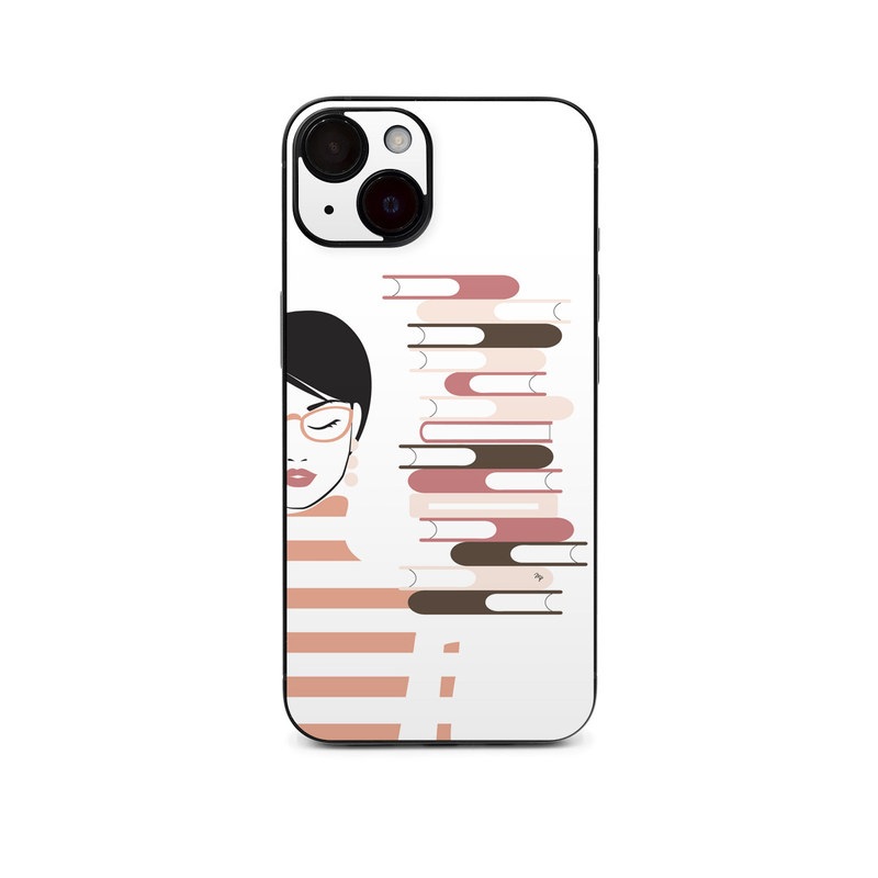 iStyles iPhone 14 Series Skin design of Eyebrow, Gesture, Font, Carmine, Graphics, Thumb, Art, Illustration, Graphic design, Lipstick, with white, black, pink, brown, red colors, and tagged with objects, people, patterns, reading, girl, spectacles.