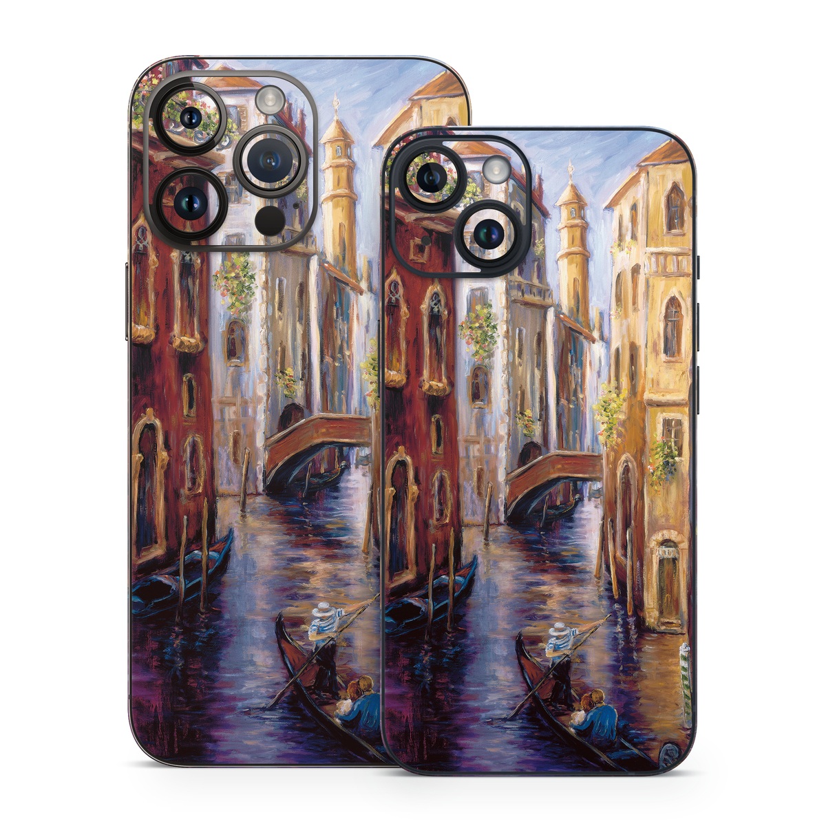 iStyles iPhone 14 Series Skin design of Painting, Watercolor paint, Waterway, Gondola, Canal, Art, Modern art, Acrylic paint, Visual arts, Building, with black, gray, red, green, blue, pink colors, and tagged with fineart, urban.