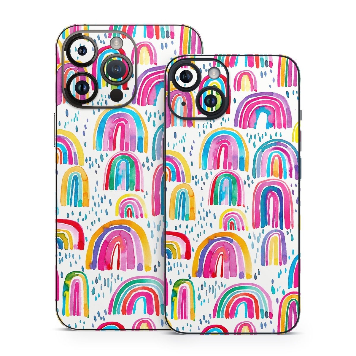 iStyles iPhone 14 Series Skin design of Line, Pattern, Design, with white, orange, yellow, blue, pink, red, green colors, and tagged with patterns, nature, abstract, abstract, bright, colorful, rain, nature, rainbow, watercolor.