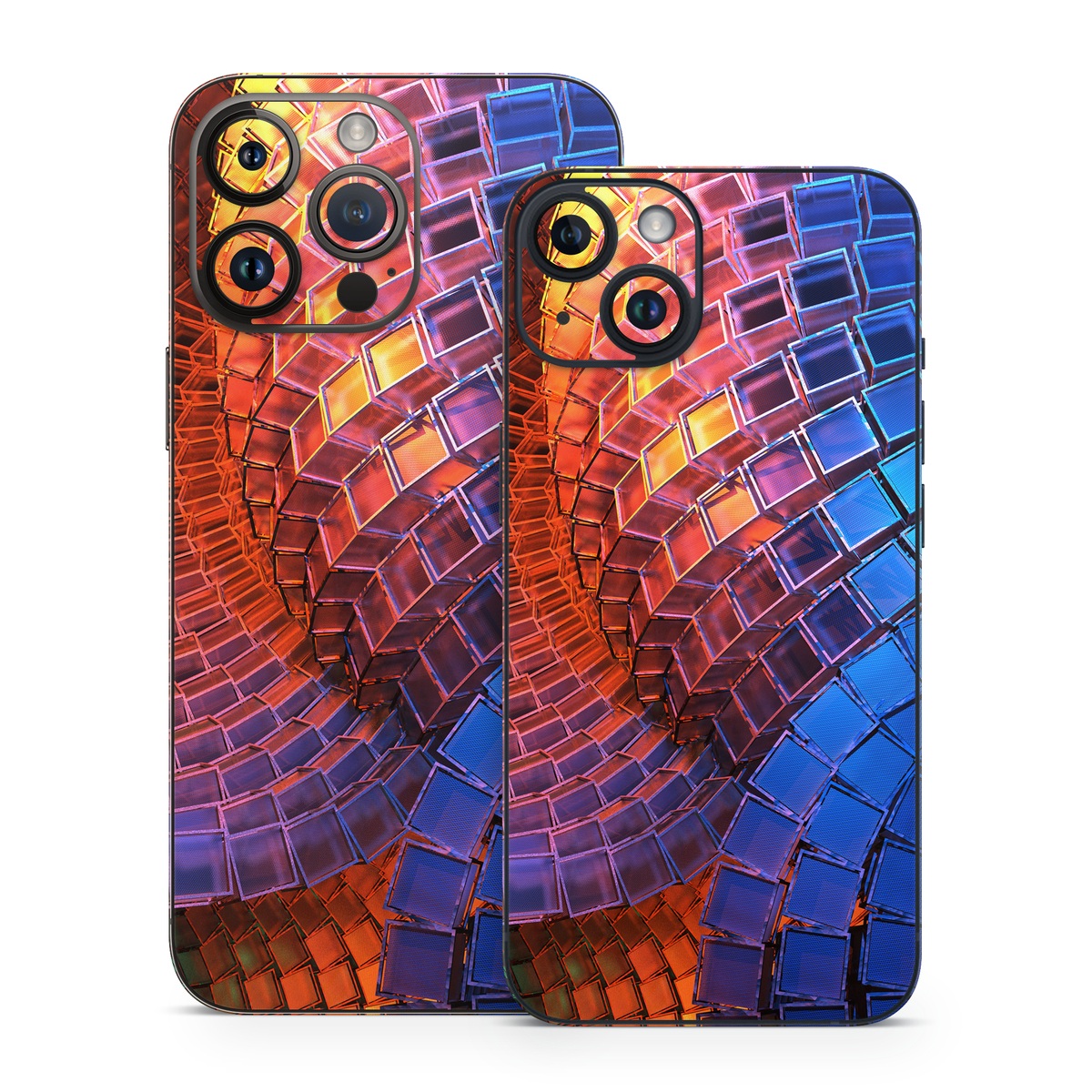iStyles iPhone 14 Series Skin design of Blue, Red, Orange, Light, Pattern, Architecture, Design, Fractal art, Colorfulness, Psychedelic art, with black, red, blue, purple, gray colors, and tagged with patterns.