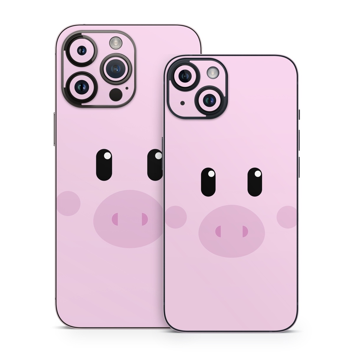 iStyles iPhone 14 Series Skin design of Pink, Cartoon, Violet, Nose, Purple, Snout, Suidae, Material property, Illustration, Animation, with pink, black, white colors, and tagged with animals, animals, cute, faces, farm, simple.