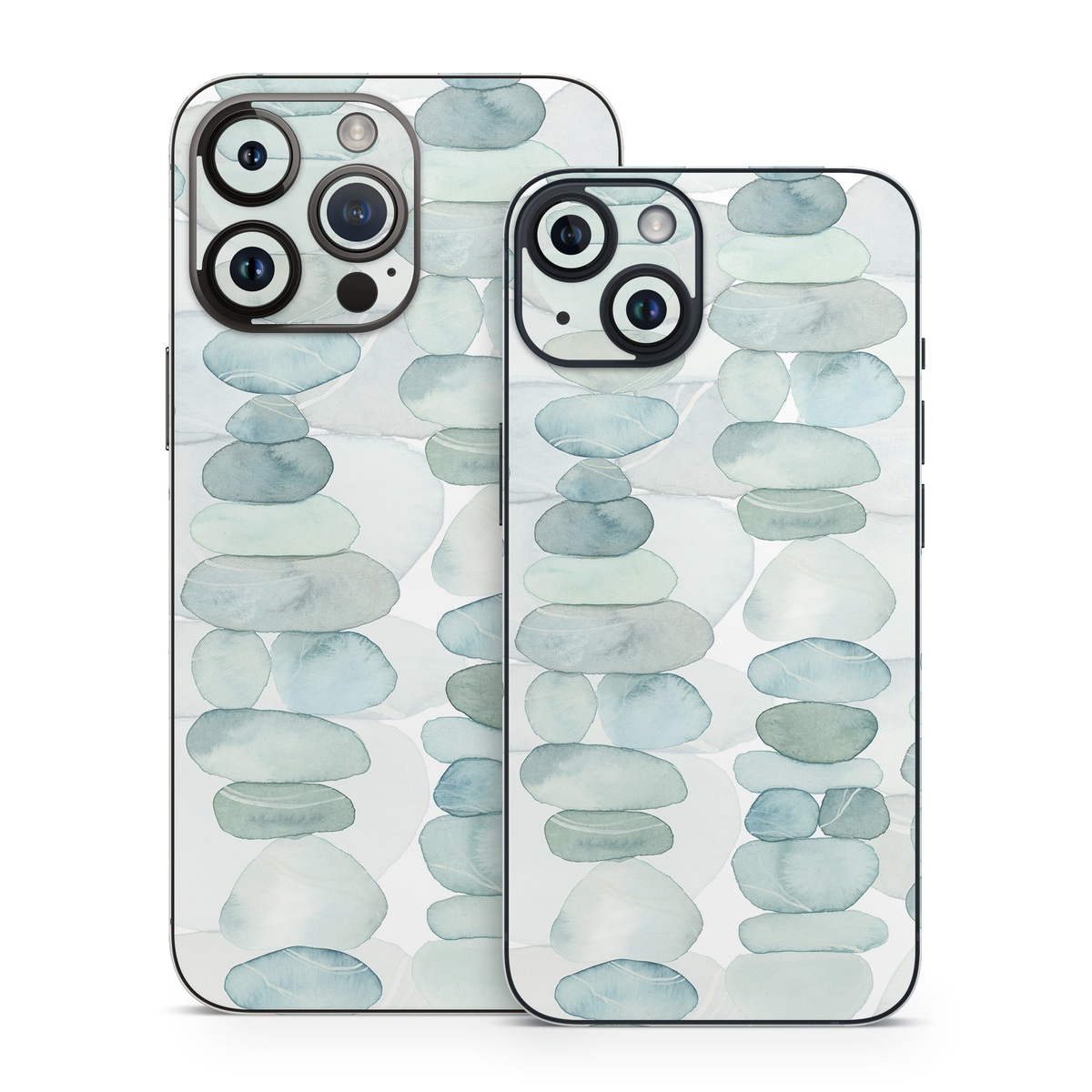 iStyles iPhone 14 Series Skin design of Aqua, Turquoise, Circle, Pattern, Transparent material, Glass, with white, blue colors, and tagged with patterns, objects, abstract, blue, blues, pebbles, stones, watercolor.