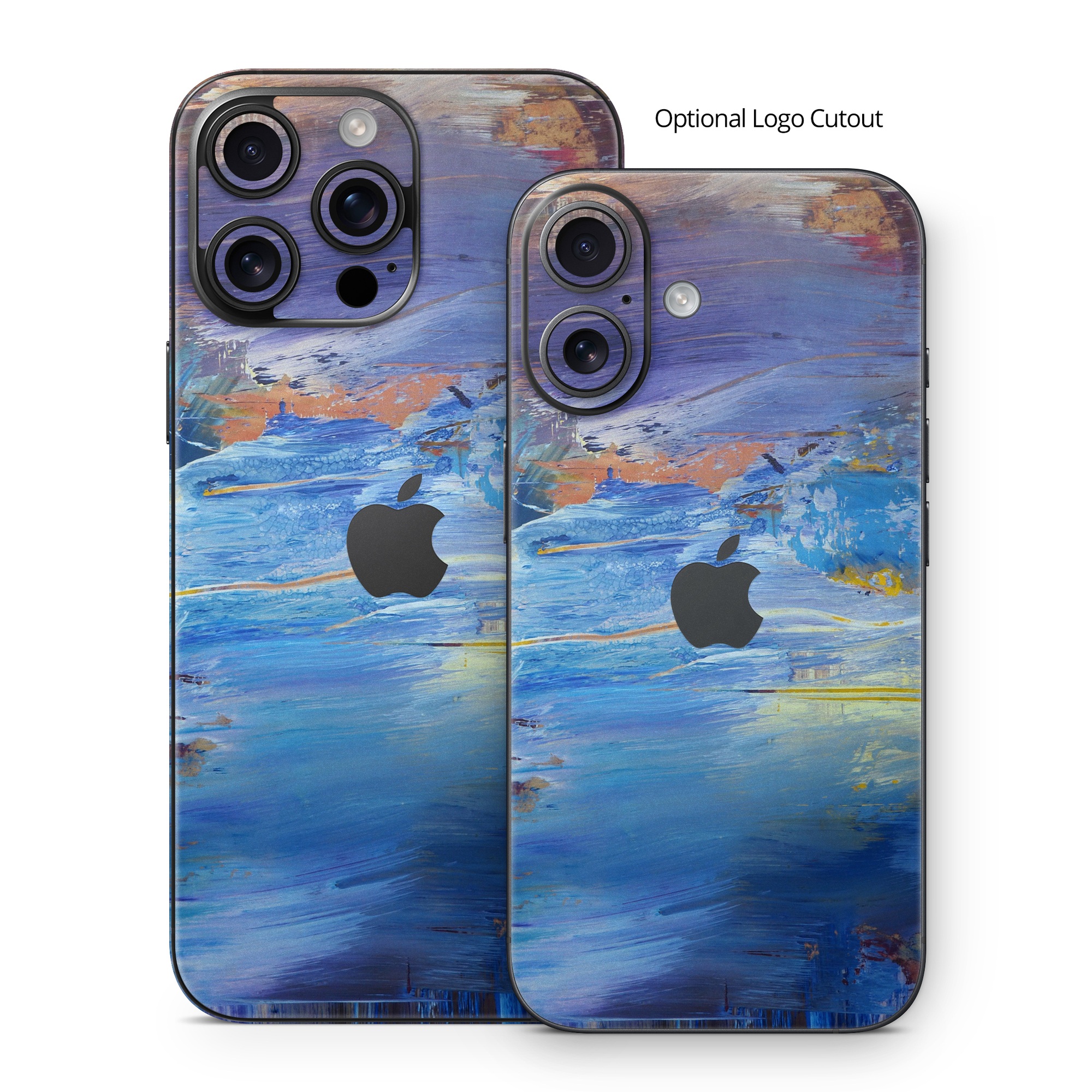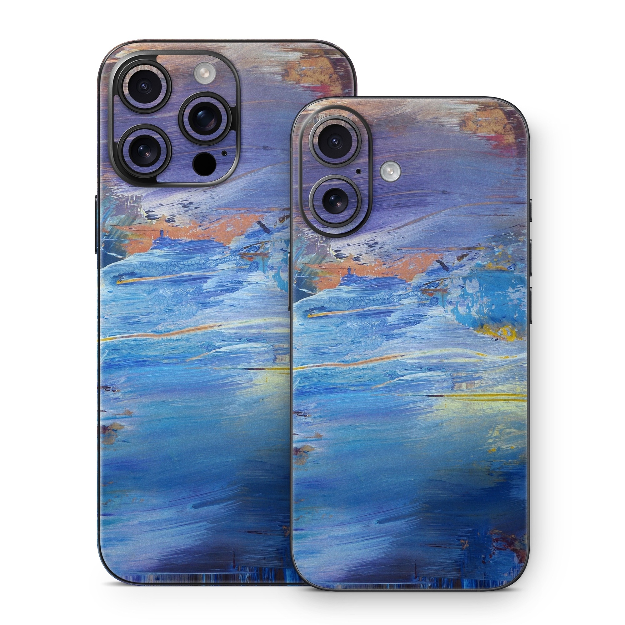 iStyles iPhone 16 Series Skin design of Painting, Blue, Modern art, Acrylic paint, Sky, Watercolor paint, Art, Visual arts, Paint, Electric blue, with blue, purple, yellow, brown, orange, black colors, and tagged with abstract, abstract, blue, creativebynature, fineart, lisalipsett, painting.