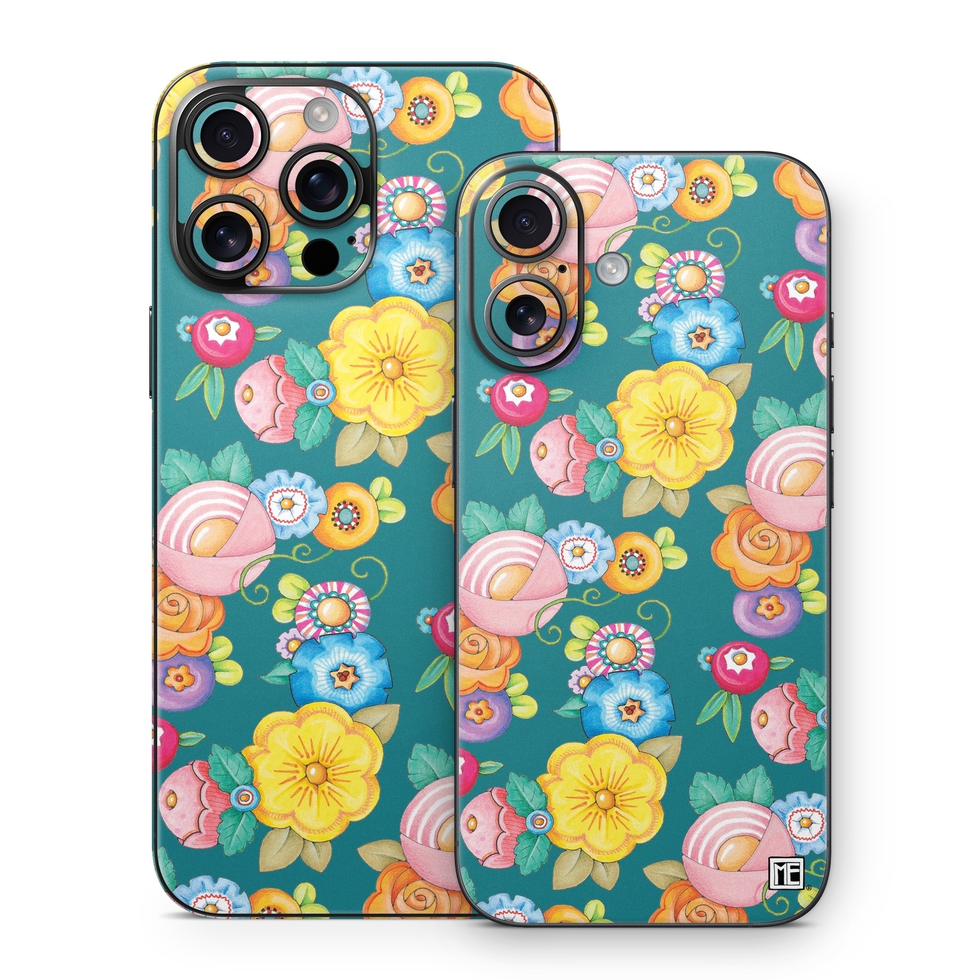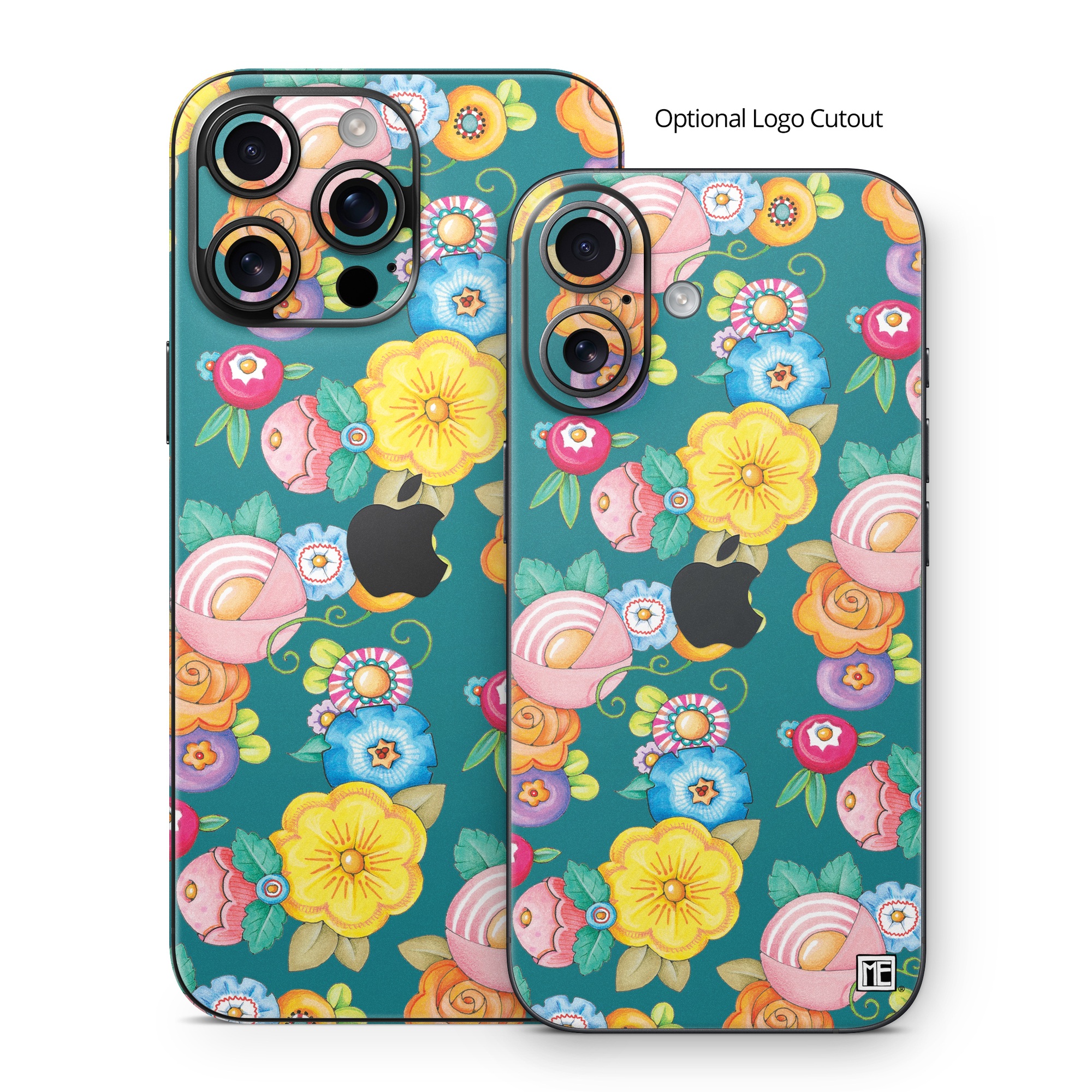 iStyles iPhone 16 Series Skin design of Rectangle, Textile, Circle, Symmetry, Pattern, Art, Visual arts, Motif, Wrapping paper, Design, with blue, green, yellow, orange, red, white, purple colors, and tagged with patterns, flowers, colorful, colourful, flowers.