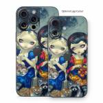 iStyles iPhone 16 Series Skin design of Doll, Cartoon, Illustration, Cat, Art, Fawn, Toy, Fictional character, Whiskers, with blue, yellow, red, orange, gray colors, and tagged with people, animals, objects.
