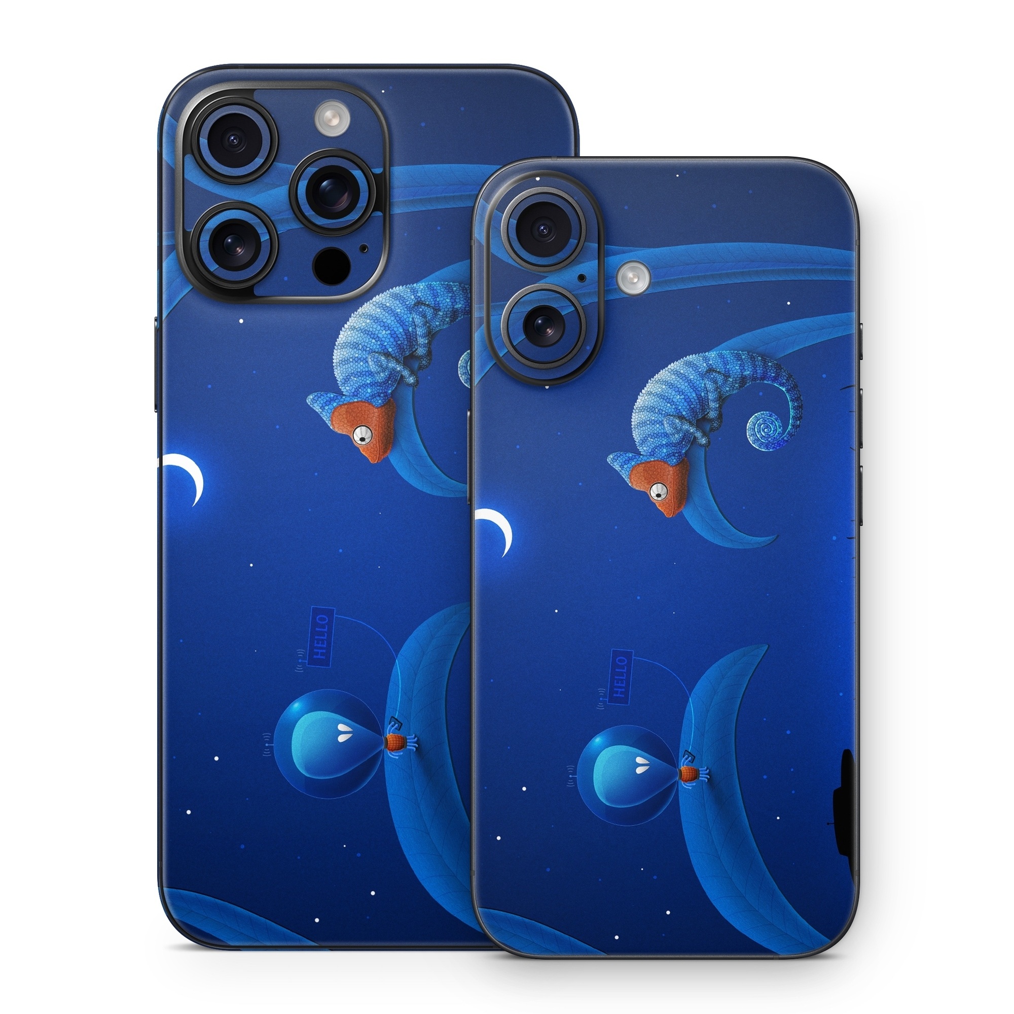 iStyles iPhone 16 Series Skin design of Organism, Astronomical object, Space, Illustration, Night, Graphics, with black, blue, orange colors, and tagged with space, fantasy.