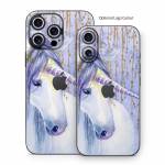 iStyles iPhone 16 Series Skin design of Horse, Eyelash, Painting, Working animal, Line, Art, Paint, Snout, Pack animal, Illustration, with white, purple, brown, yellow colors, and tagged with animals, fantasy, unicorn, tiara, horn.