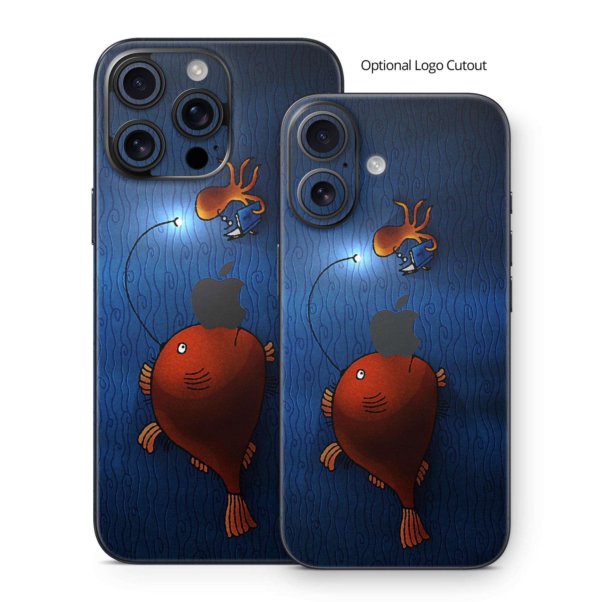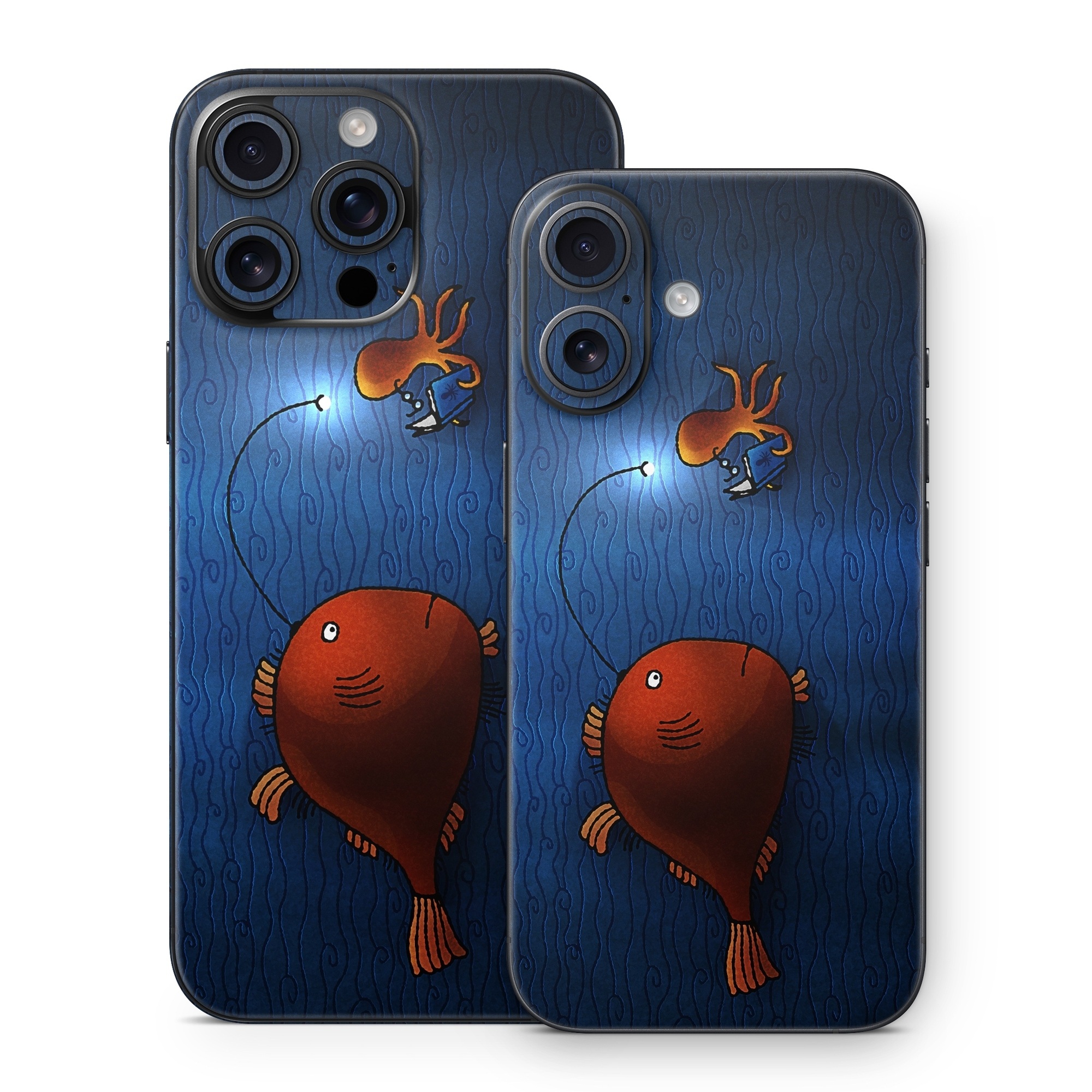 iStyles iPhone 16 Series Skin design of Deep sea fish, Anglerfish, Illustration, Fish, Animation, Art, with blue, red colors, and tagged with animals.