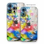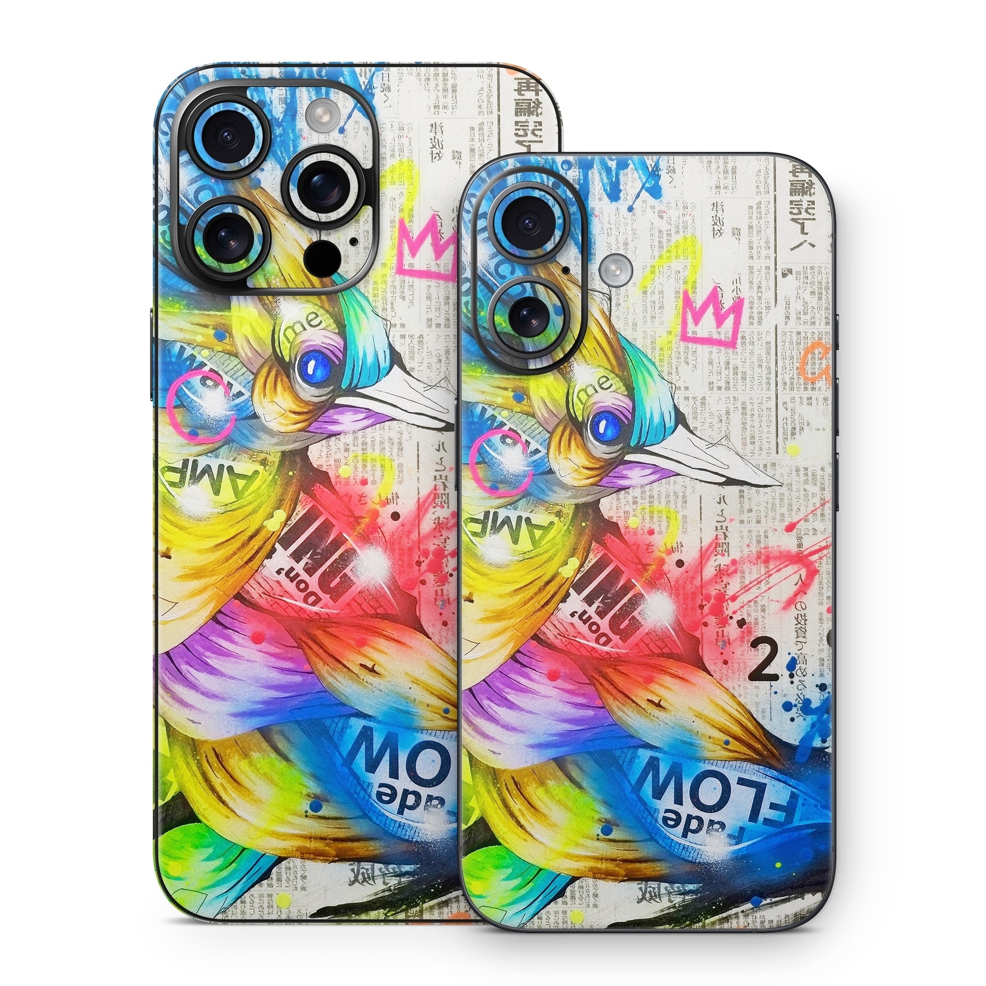 iStyles iPhone 16 Series Skin design of Graphic design, Font, Art, Graphics, Illustration, with blue, red, orange, pink, white, black, yellow, green colors, and tagged with animals, abstract, signs.