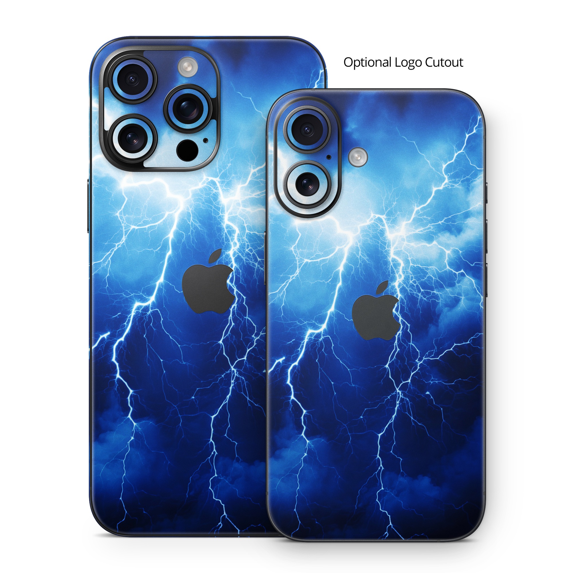 iStyles iPhone 16 Series Skin design of Thunder, Sky, Atmosphere, Daytime, Cloud, Water, Lightning, Light, Azure, Natural environment, with black, blue colors, and tagged with patterns, nature, lightning, sky, thunderstorm, storm, electricity.