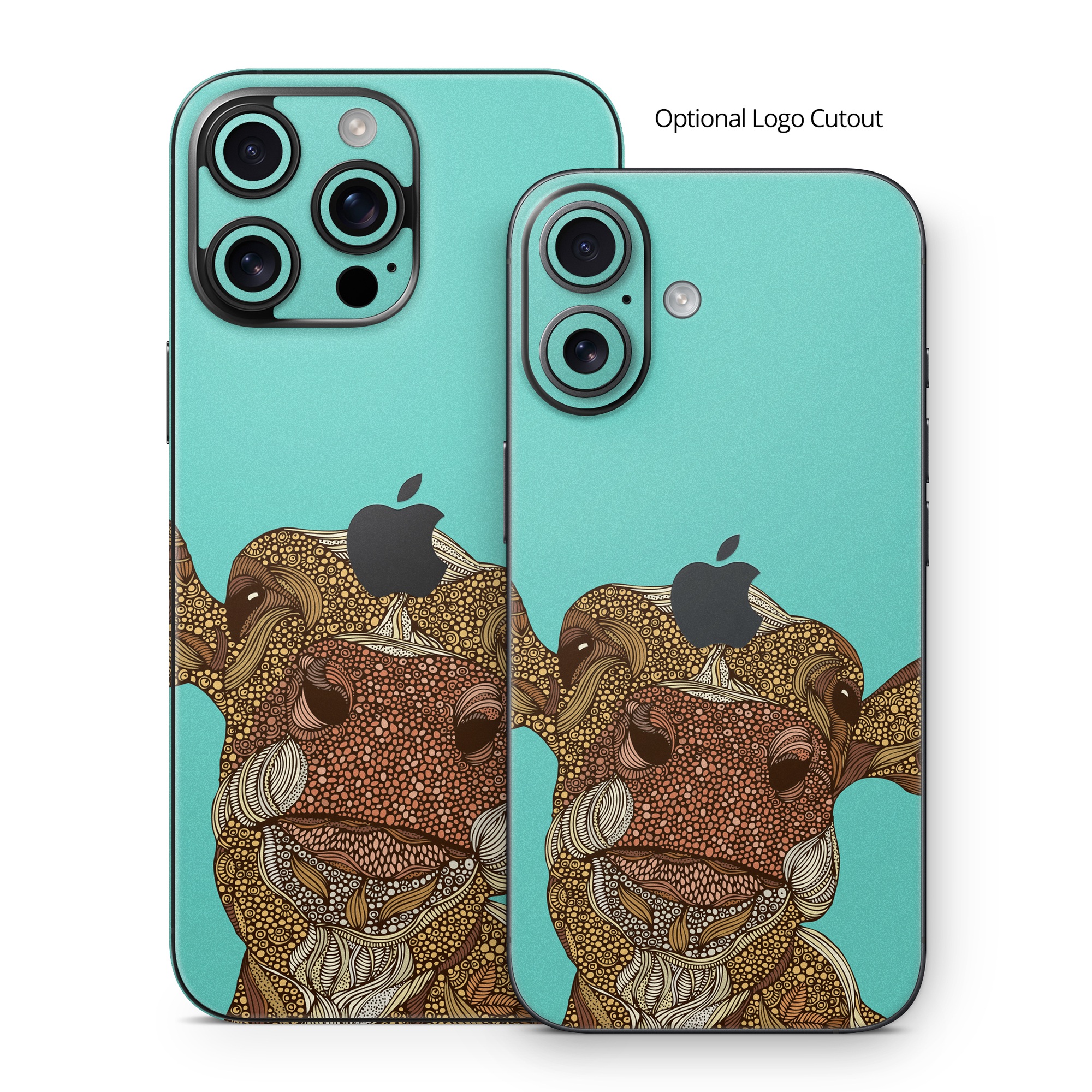 iStyles iPhone 16 Series Skin design of Head, Illustration, Art, Fictional character, with brown, green colors, and tagged with animals, patterns.