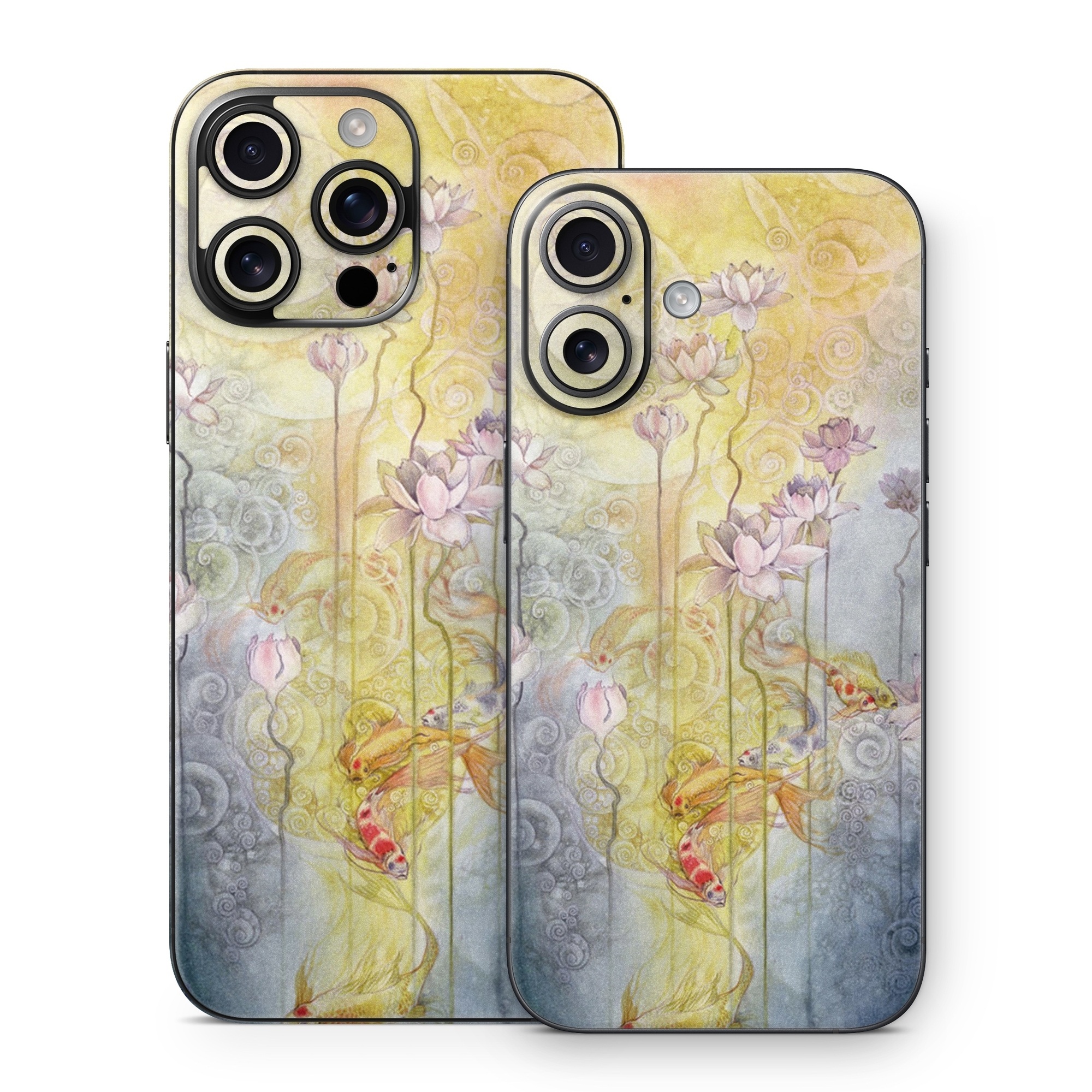 iStyles iPhone 16 Series Skin design of Watercolor paint, Painting, Art, Yellow, Flower, Acrylic paint, Floral design, Visual arts, Modern art, Illustration, with blue, red, orange, pink, yellow colors, and tagged with animals, flowers, fish, flowers, lotus.
