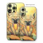 iStyles iPhone 16 Series Skin design of Nature, Mammal, Art, Fawn, Owl, Illustration, Tail, Fictional character, Visual arts, Terrestrial animal, with yellow, orange, green, white, black colors, and tagged with fantasy, animals, nature, tiger, stripes, wings, horns, yellow, leaves.