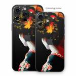 iStyles iPhone 16 Series Skin design of Geisha, Red, Flower, Plant, Headgear, Photography, Peking opera, Costume, Headpiece, Art, with black, red, orange, yellow, white colors, and tagged with people, objects, nature, flowers.